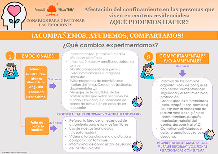 De la situación de alerta sanitaria que estamos viviendo se derivan consecuencias a muchos niveles: sanitario, económico y también psicológico, entre otros. Las personas mayores están en riesgo por su gran vulnerabilidad. Aparte de las afecciones médicas, esta situación también puede generar diferentes afectaciones psicológicas (miedo, sensación de indefensión, tristeza, aburrimiento, angustia…).
