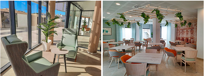El estudio de arquitectura e interiorismo Requena y Plaza ha concluido el proyecto de interiorismo del nuevo centro de Grupo Emera en Almería, una residencia de mayores de nueva construcción en su totalidad que dispone de 105 habitaciones.