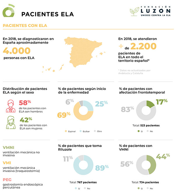 Para ello, el Observatorio no sólo se centra en describir los datos más relevantes relacionados con el perfil del paciente de ELA en España, sino que también analiza la situación de la asistencia sanitaria y la atención social a los afectados, así como la I+D+i que se lleva a cabo en España. Los interesados pueden escargue descargar aquí el Informe 2018 del Observatorio Luzón sobre ELA.