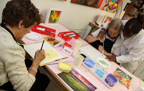 Los profesionales de la Asociación AmiArte, con una gran experiencia en iniciar procesos creativos, atienden a los residentes, explicándoles las diferentes técnicas artísticas, cómo iniciarse en ellas, los conocimientos básicos para la creación en el mundo del arte y todo tipo de dudas que plantean las personas mayores. Algunos de los participantes en esta experiencia proceden de otros países, por lo que la actividad también posee un componente intercultural. Desde la puesta en marcha del proyecto, el grupo de personas mayores acude semanalmente a AmiArte para instruirse en la creación artística y expresarse a través de ella.