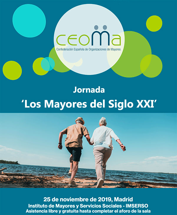 La Confederación Española de Organizaciones de Mayores (CEOMA), en colaboración con la colaboración de la compañía B The Travel Brand y del Instituto de Mayores y Servicios Sociales (IMSERSO), organiza la Jornada ‘Los Mayores del Siglo XXI’, que tendrá lugar el día 25 de noviembre, en el Salón de Actos del IMSERSO.