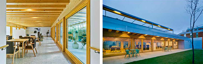 Con el objetivo de reducir la huella ecológica, tiempos y costes, así como de mejorar el comportamiento térmico del edificio, este se construyó mediante un sistema prefabricado de estructura de entramado ligero de madera de abeto en Barcelona y se trasladó a Zamora para su montaje, que se realizó solamente una semana.