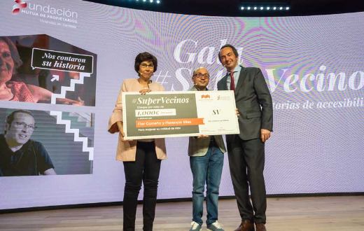 La campaña de concienciación social #Supervecinos celebró en Madrid la gala de entrega de premios en reconocimiento a las personas e instituciones que con sus obras y proyectos ayudan en su día a día a las personas con movilidad reducida. En esta primera edición de la campaña la vecina de Madrid Flor Carreño y el Ayuntamiento de Caspe (Zaragoza) fueron premiados por sus buenas prácticas.