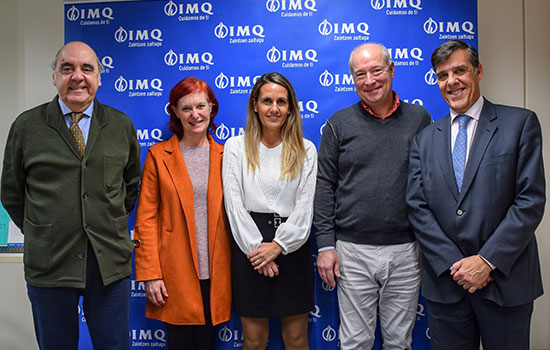 El convenio fue suscrito por Manuel Quesada Morillas, delegado en el País Vasco y Navarra de ANDADE; María Jesús Urrutia, voluntaria de ANDADE; Santiago Canales, director gerente de IMQ Igurco; el doctor Iñaki Artaza, director Médico Asistencial de esta entidad sociosanitaria; e Isabel Urrutia, responsable de Calidad y Seguridad del Paciente de Grupo IMQ.