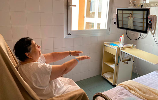 En el marco de este programa se confeccionaron dos audiovisuales con ejercicios sencillos de intensidad leve y moderada que, bajo prescripción facultativa, la persona puede realizar en su habitación, visualizándolos desde la pantalla situada a pie de cama, y con la supervisión de una enfermera en caso de que sea necesario.
