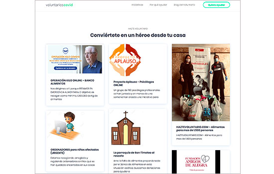 La web, www.voluntarioscovid19.com d aglutinan los proyectos de voluntariado relacionados con la lucha contra el COVID-19