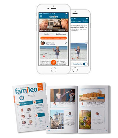 Famileo es una app que permite a cada miembro de la familia enviar fotos y mensajes desde su móvil, tablet u ordenador a través de la aplicación o la página web de Famileo, para compartirlos con el resto de la familia. La aplicación ofrece a las familias una red privada virtual que garantiza la privacidad, confidencialidad e integridad de los datos y está libre de publicidad. Estos mensajes enviado por los familiares a los mayores se maquetan de forma automática en formato de revista papel personalizadas (ver un ejemplo aquí) para que la residencia las pueda imprimir y distribuir directamente a los mayores como si se tratara de correo ordinario con la periodicidad escogida.