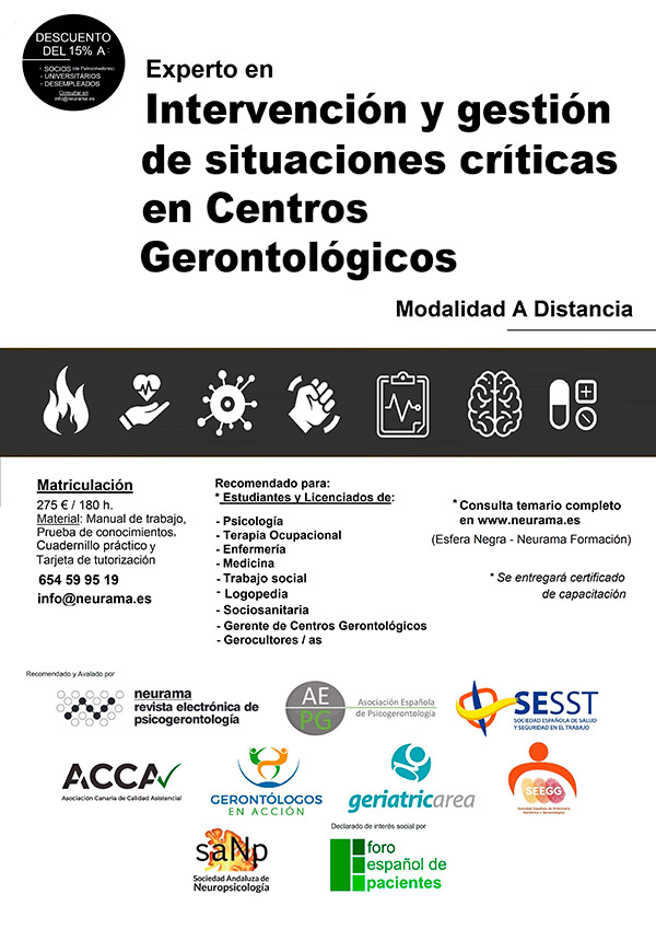 […] su abordaje multidisciplinar, el curso Experto en «Intervención y gestión de situaciones críticas en Centros Gerontológicos» se encuentra avalada y recomendada por asociaciones, fundaciones y entidades cada una de ellas […]