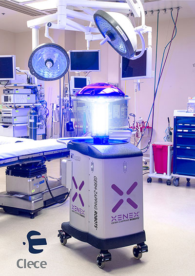 Clece dispone en la actualidad de 37 robots Xenex que se emplean en centros sanitarios y sociosanitarios de referencia como el Vall d’Hebron de Barcelona, el Hospital la Fe de Valencia, el Centro Alzheimer Fundación Reina Sofía, Virgen de la Candelaria en Tenerife, Hospital Virgen de las Nieves (Campus de la Salud) de Granada o el Hospital Miguel Servet de Zaragoza. Asimismo, la compañía imparte cursos para formar Técnicos de Servicio Certificados por Xenex-Clece, garantizando así la profesionalidad en la aplicación de la tecnología viricida.