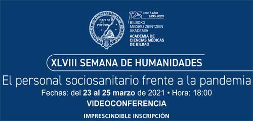 Bjo el lema “El personal sociosanitario frente a la pandemia”, la XLVIII Semana de Humanidades está organizada por la Academia de Ciencias Médicas de Bilbao (ACMB) con el patrocinio de la Diputación Foral de Bizkaia y del Igualatorio Médico Quirúrgico (IMQ), y cuenta con la colaboración del departamento de Salud del Gobierno Vasco, el Servicio Vasco de Salud-Osakidetza, la Facultad de Medicina y Enfermería y la Facultad de Farmacia de la Universidad del País Vasco/Euskal Herriko Unibertsitatea (UPV/EHU), la Universidad de Deusto y Mutualia.