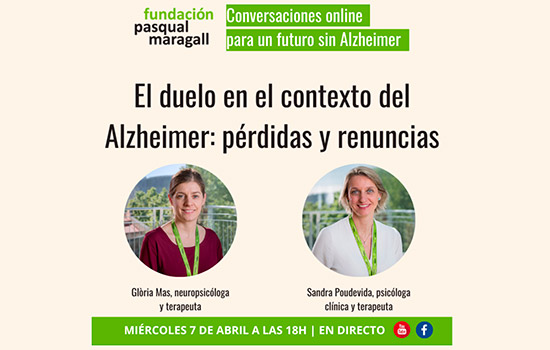 Con el objetivo de ofrecer pautas y consejos sobre cómo gestionar estas situaciones de duelo, la Fundación Pasqual Maragall organiza el miércoles 7 de abril, a las 18 horas, el encuentro online «El duelo en el contexto del Alzheimer: pérdidas y renuncias», en el que participarán la neuropsicóloga clínica y terapeuta Glòria Mas y la psicóloga clínica y terapeuta Sandra Poudevida.