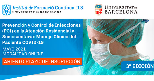 El Instituto de Formación Continua de la Universitat de Barcelona (IL3) convoca una nueva edición del curso online ‘Prevención y Control de Infecciones (PCI) en la Atención Residencial y Sociosanitaria: Manejo Clínico del Paciente COVID-19′.