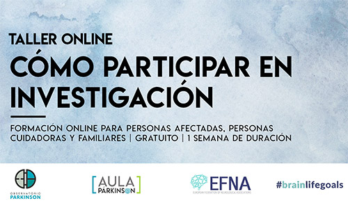 Ambas actividades se enmarcan en el proyecto “Programa formativo de participación en investigación para personas que conviven con la enfermedad de Parkinson” ganador del #BrainLifeGoals, una convocatoria que lanza la Federación Europea de Asociaciones Neurológicas (EFNA) con el objetivo de concienciar sobre el impacto de las enfermedades neurológicas.