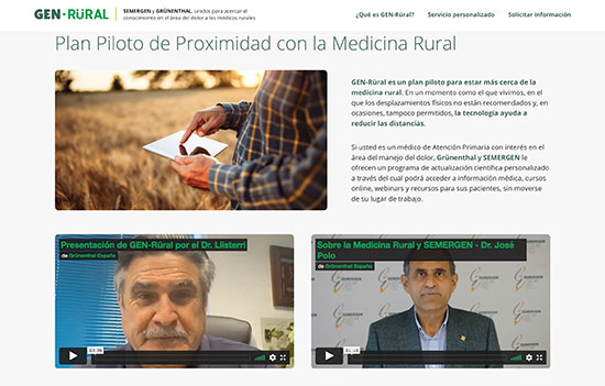 SEMERGEN y Grünenthal han opuesto en marcha el proyecto GEN-Rüral, una plataforma que ofrece un completo programa de actualización científica con información médica, cursos online, webinars y recursos para los pacientes con dolor crónico que viven en el ámbito rural.