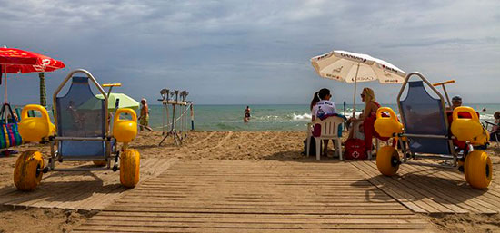 Este año, como novedad, este servicio no se reduce solo a la ayuda durante el baño. Este año, en 8 playas, estas personas también podrán disfrutar de un día entero en la playa, solos o acompañados por quienes quieran, gracias a la disposición de zonas especiales en las playas habilitadas con ayudas técnicas (silla anfibia, muletas anfibias y andadores), sesiones de movilidad (con fisioterapeutas), zona de ejercicios para el desarrollo de la movilidad (como mancuernas, pelotas y tiras elásticas), zona de masaje y personal de animación con actividades para adultos o niños.