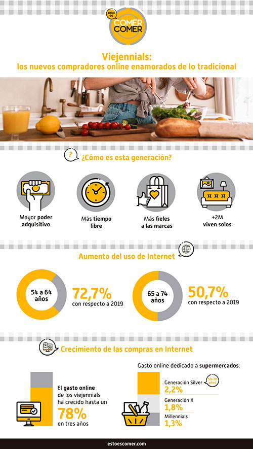 Son numerosas las razones por las cuales las empresas que pertenecen al sector alimentario están perdiendo una oportunidad de negocio no contando con los grupos más senior. La generación que más riesgos corría durante la crisis sanitaria fue el de los viejennials, que también tuvo que modificar su forma de hacer la compra con el fin de reducir su riesgo de contagios. De hecho, esta generación es la que mayor porcentaje de gasto online dedica a supermercados, un 2,2% frente al 1,8% de la Generación X y al 1,3% de los Millenials, según datos de Bankintercard.