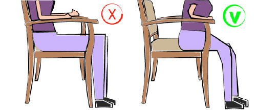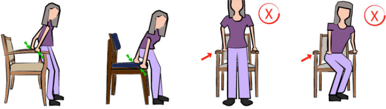 La técnica para sentarse de forma segura y sin arriesgar los músculos de la espalda sigue siendo la misma independientemente del siento. La silla con reposabrazos sigue siendo la más adecuada para realizar estos gestos con facilidad.