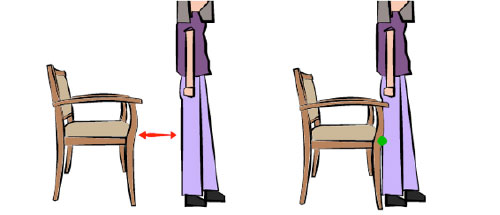 Primero, acercarse lo más posible a la silla. Una vez al frente, dar la vuelta y retroceder lentamente hasta sentir su contacto con las pantorrillas.