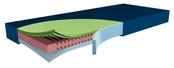 Está fabricado con costuras selladas con ultrasonido y núcleo de espuma hiperelástico de 3 capas (con cortes longitudinales y transversales). Cuenta con funda-PU-Tex extraíble, lavable a 95ºC, desinfectable y resistente a los desinfectantes.