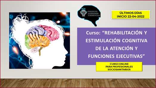 El curso «Rehabilitación y estimulación cognitiva de la atención y funciones ejecutivas» se iniciará el 22 de abril con el objetivo de profundizar en la función cognitiva de la atención y las funciones ejecutivas, para entender mejor a los pacientes y poder proponerles ejercicios de rehabilitación y estimulación cognitivas adecuados a sus déficits. El programa formativo es el siguiente: