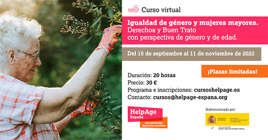 En el curso también se analizarán la Agenda 2030 y otras estrategias nacionales e internacionales creadas para promover la inclusión de las mujeres mayores. Impartido por Belén Martínez Perianes, Responsable de Formación, Sensibilización y Campañas de HelpAge International España, tiene una duración de 20 horas lectivas y el precio es 30 euros.