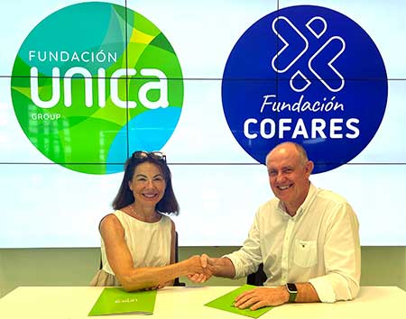 Sofía Azcona, directora de la Fundación Cofares, y Enrique de los Ríos, director de Unica Group, han firmado ente acuerdo
