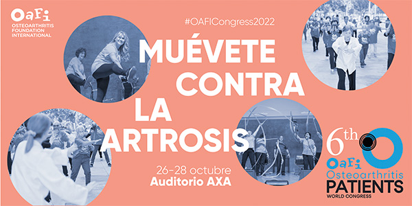 El 6º Congreso Internacional de Pacientes con Artrosis (#OAFICongress2022) tendrá lugar los días 26, 27 y 28 de octubre en el Auditorio AXA, L’Illa Diagonal, Barcelona.