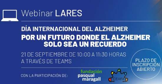 El Grupo Social Lares, con motivo del Día internacional del Alzheimer, organiza el webinar “Por un futuro donde al Alzheimer solo sea un recuerdo”. Tendrá lugar el 21 de septiembre de 10:00 a 11:30 horas en modalidad online a través de la plataforma TEAMS. El programa es el siguiente: