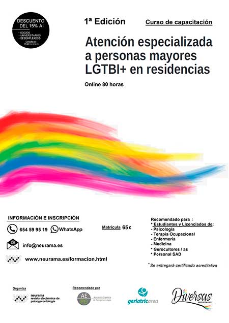 Neurama convoca la primera edición del curso online Atención Especializada a Personas Mayores LGTBI+ en Residencias, en el que se proponen una serie de programas de intervención junto a un análisis exhaustivo de factores incidentes en la institución y la Atención Centrada en el Paciente.