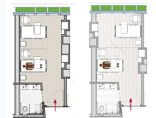 El acceso a la luz natural y las vistas al exterior son clave para mejorar el estado anímico de los pacientes. Este diseño de habitación posibilita que desde ambas camas se puedan ver las ventanas, a diferencia del modelo tradicional.