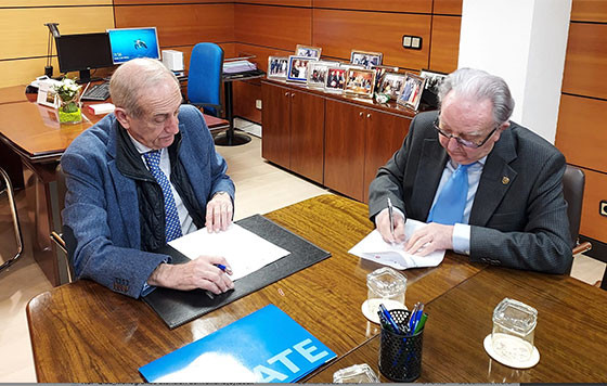 En la imagen, Fernando García Andrés, presidente del Colegio de Economistas, y Modesto Chato, presidente de UNATE y Fundación PEM, durante la firma de este convenio