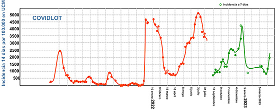 En la imagen, evolución de la incidencia de la positividad por virus SARS-CoV-2 según el programa COVID-LOT