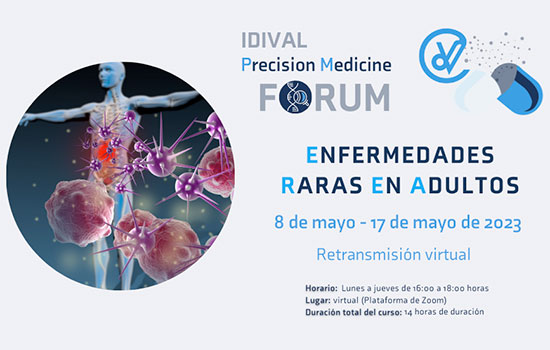 Este encuentro del Foro Internacional de Medicina de Precisión, que organiza IDIVAL se dirige a personal clínico, investigador y de soporte que quiera profundizar de la mano de expertos, en aspectos relacionados con la investigación y la medicina de precisión en el campo de las enfermedades raras en adultos.