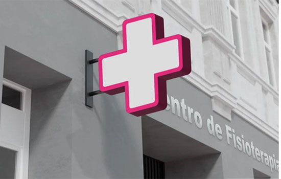 Una cruz blanca con borde fucsia es el símbolo identificativo propio de los centros y consultas de Fisioterapia de toda España