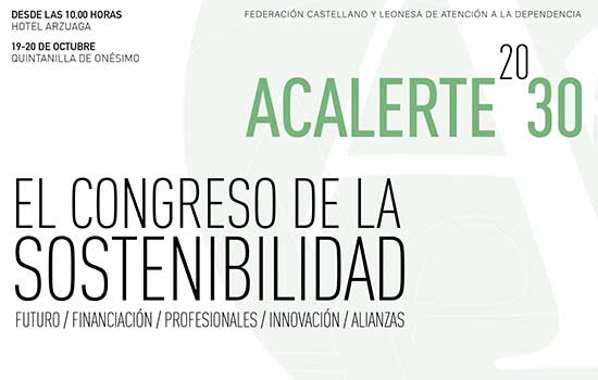 Para celebra sus 30 años de existencia la Federación Castellano y Leonesa de Atención a la Dependencia (Acalerte) organiza el Congreso de la Sostenibilidad, que tendrá lugar los días 19 y 20 de octubre en el Hotel Arzuaga, en Quintanilla de Onésimo (Valladolid).