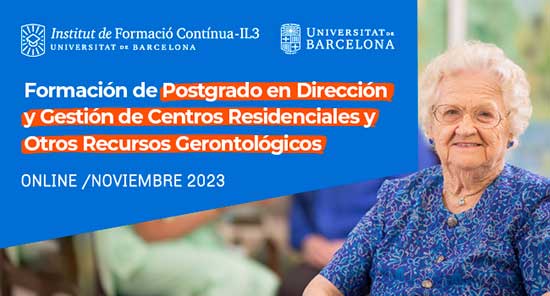 IL3, el Instituto de Formación Continua de la Universitat de Barcelona, convoca una nueva edición de su Postgrado en Dirección y Gestión de Centros Residenciales y Otros Recursos Gerontológicos, que se impartirá del 6 de noviembre de 2023 al 1 de noviembre de 2024.