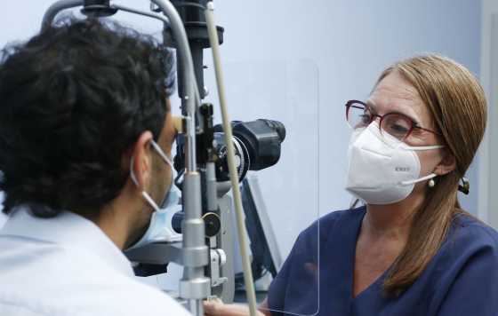 En la imagen exploración del ojo seco por la Dra. Cecilia Salinas