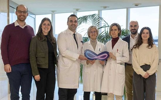 En la imagen, en el centro y de izq., a dcha., el Dr. Laín González-Quarante, la Dra. María Cruz Rodríguez Oroz y la Dra. Icíar Avilés-Olmos junto a representantes de Medtronic, empresa que fabrica del dispositivo