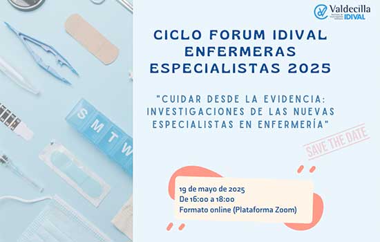El Grupo de Investigación en Enfermería del IDIVAL, en colaboración con la Subdirección de Cuidados del Servicio Cántabro de Salud (SCS), organiza la jornada online ‘Ciclo Forum IDIVAL: Enfermeras especialistas 2025′, que forma parte del programa CECBE (Cuidados Enfermeros Centrados en la Evidencia).