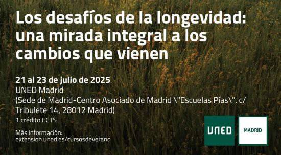 El Centro Asociado a la UNED en Madrid organiza, del 21 al 23 de julio, el Curso de Verano ‘Los desafíos de la longevidad: una mirada integral a los cambios que vienen’, dirigido por María del Pilar Gomiz Pascual y coordinado por Alejandra Pereira Calvo.