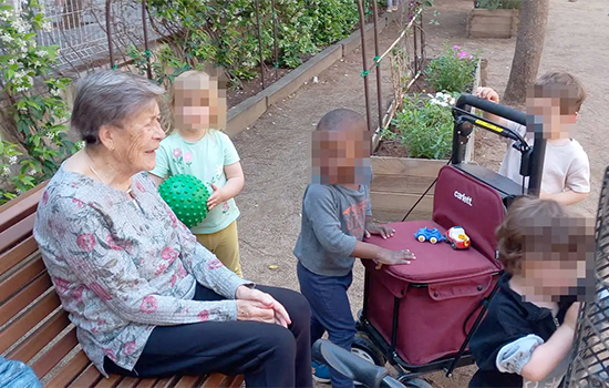 Esta iniciativa, que nace para fomentar en los usuarios la conexión social y emocional y que se sientan parte de la comunidad a la que pertenecen, recoge actividades intergeneracionales como crear manualidades, participar en festividades (por ejemplo, cantar villancicos en Navidad, explicar cuentos en Sant jordi, entre otros), así como la realización de materiales para las instalaciones y decoración que se requieran, juguetes de ganchillo, etc. Y con el buen tiempo también se llevan a cabo actividad de acompañamiento a los niños durante el tiempo de juego al aire libre.