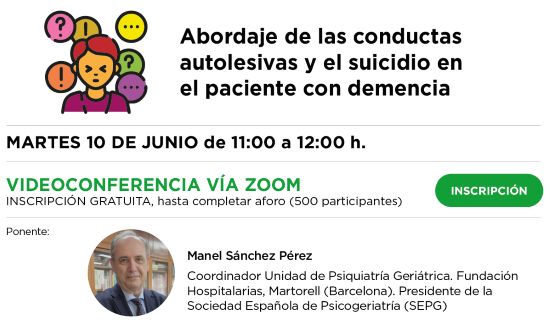Las personas interesadas en asistir al webinar ‘Abordaje de las conductas autolesivas y el suicidio en el paciente con demencia’ pueden inscribirte aquí.